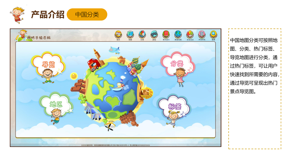 “阿咘手绘百科-中国地理”是一款涵盖中国及各省份/直辖市/自治区及港澳台地理知识教育的产品。通过地区层级属性及各地区的本地特色内容属性,以轻松互动的学习方式、卡通手绘的设计样式,深度解读各地区风采,为广大读者提供更便捷的学习渠道。